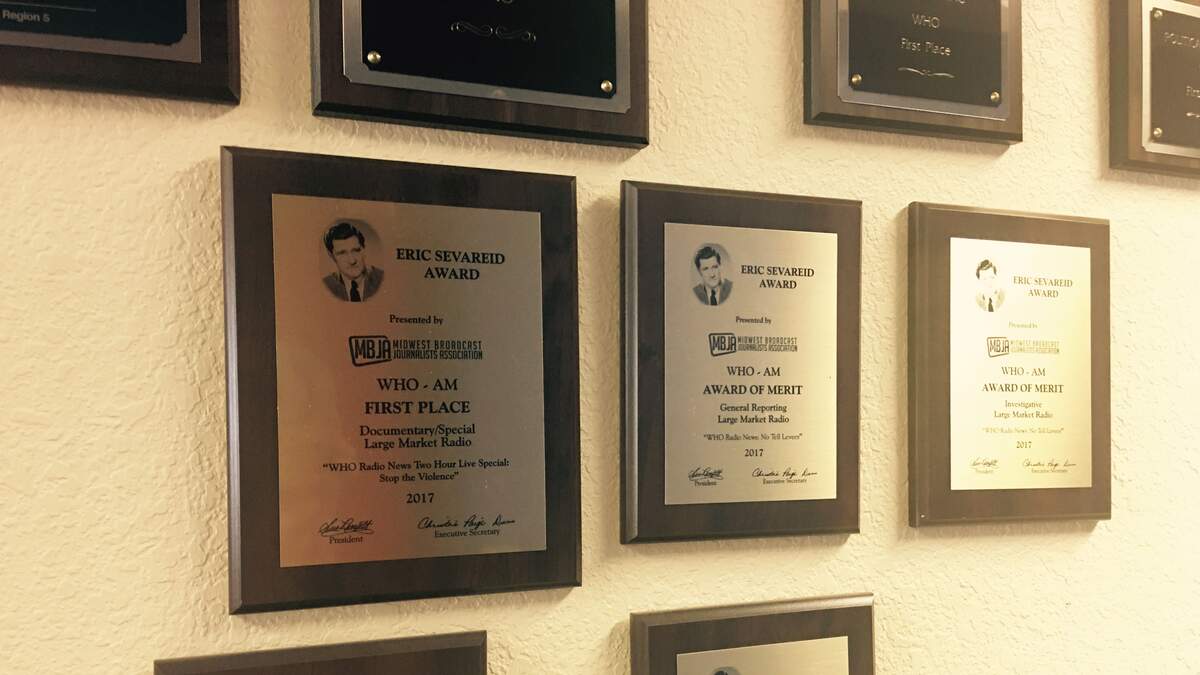 WHO Radio News also received two Sevareid Merit Awards for Investigative Reporting and General Reporting in the large market category.