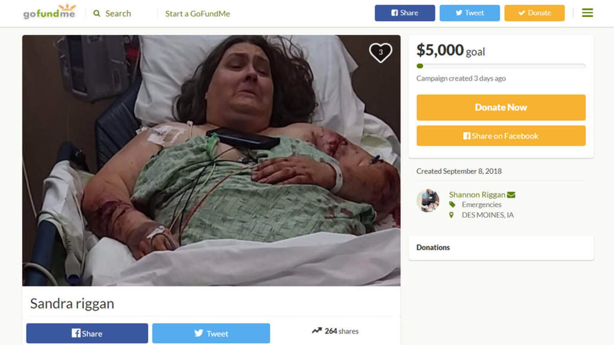 Riggin has bite and claw wounds and down her arms and on her abdomen, shown on her GoFundMe account page, and more graphic photos on her Facebook page. Click links to see more.
