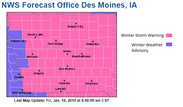 A Winter Storm Warning is posted for NW Iowa by late Friday morning, and Central, Southern, and Eastern Iowa by the late afternoon Friday.
