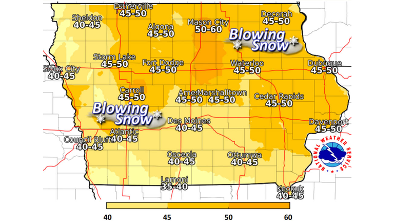 DES MOINES, Iowa - A BLIZZARD WARNING is in effect for the Northwest half of Iowa including I-80 west of Des Moines, and I-35 to the north through Sunday at 6:00 p.m.