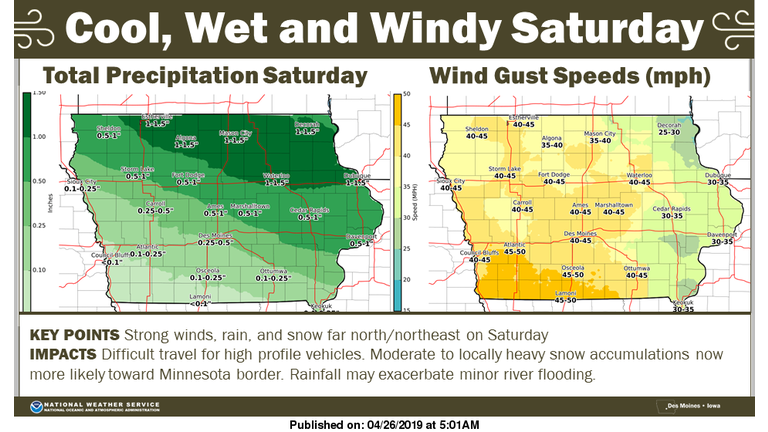 In Central and eastern Iowa, rain and windy conditions are expected Saturday.