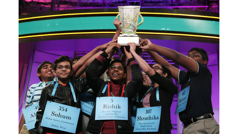 Dr.Jacques Bailly said they "threw the dictionary” at those eight children, and the champions “showed the dictionary who was boss.” The kids: Rishik Gandhasri, Erin Howard, Saketh Sundar, Shruthika Padhy, Sohum Sukhatankar, Abhijay Kodali, Christopher Serrao and Rohan Raja spelled the final 47 words correctly in all.
