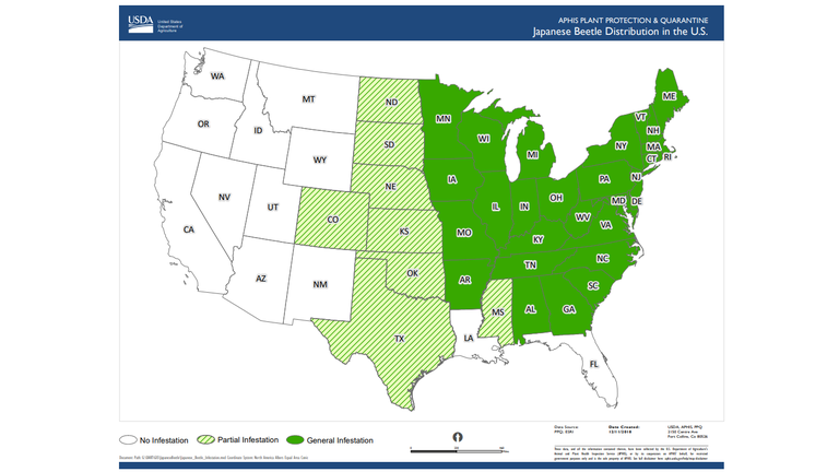 Japanese Beetles stripping trees in Nebraska, Iowa, Illinois MAP INFO