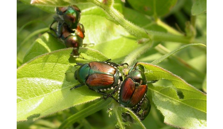 OMAHA, Nebraska - Japanese beetles are eating their way across back yards this summer in Nebraska, Iowa, Illinois and throughout much of the Midwest and Eastern United States.