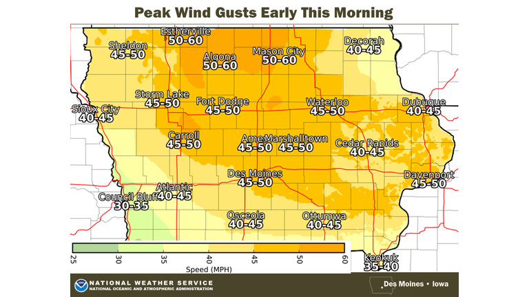 For the rest of Iowa, the Wind Advisory ends at 4 this afternoon, and the High Wind Warning in Northern Iowa ends at 10 a.m. posted by the National Weather Service in Des Moines.