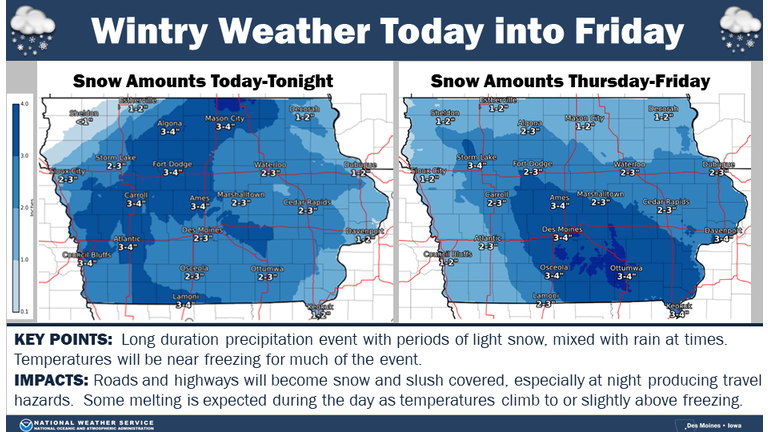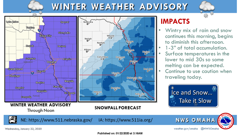 OMAHA, Nebraska - Light snow, mixed at times with rain is expected on and off from today into Friday with light to moderate accumulations across much of the region.