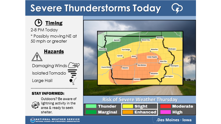 The National Weather Service says after wrestling with rain and thunderstorms today in Iowa, a strong cold front will move through and return the state to winter-like conditions for a day or two.