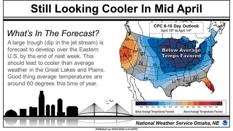 Below average temperatures are expected later this week and into the middle of April, starting as early as Thursday. We could even see below-freezing conditions in the mornings.