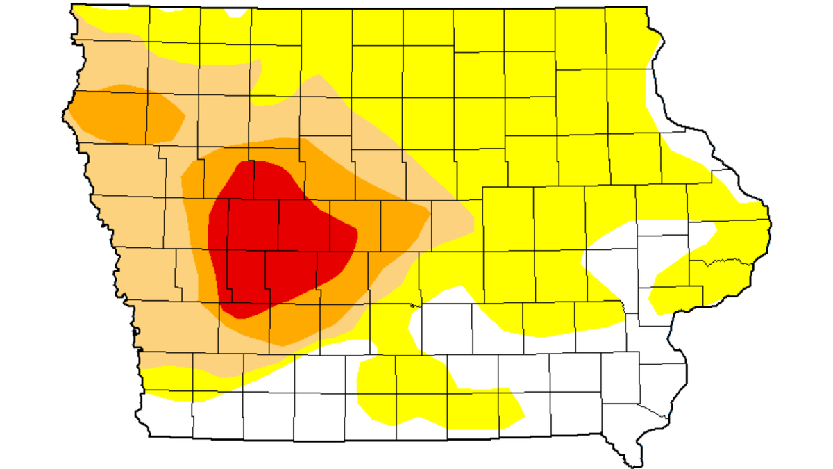 DES MOINES, Iowa - Parts of Southwest and West Central Iowa are now in extreme drought.