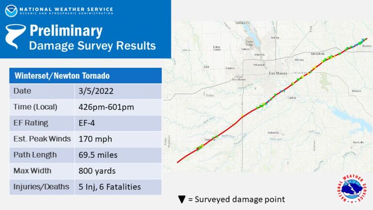 It's the first confirmed EF-4 tornado in Iowa since 2013, and the deadliest Iowa tornado since 2008. It's the second-longest tornado path in Iowa since 1980.