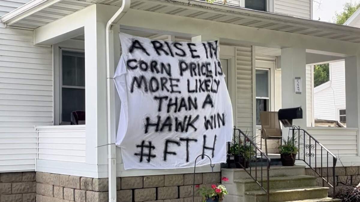 Students from both the University of Iowa and Iowa State University participate in Hate Week by painting trash-talk slogans and hanging them outside their homes.