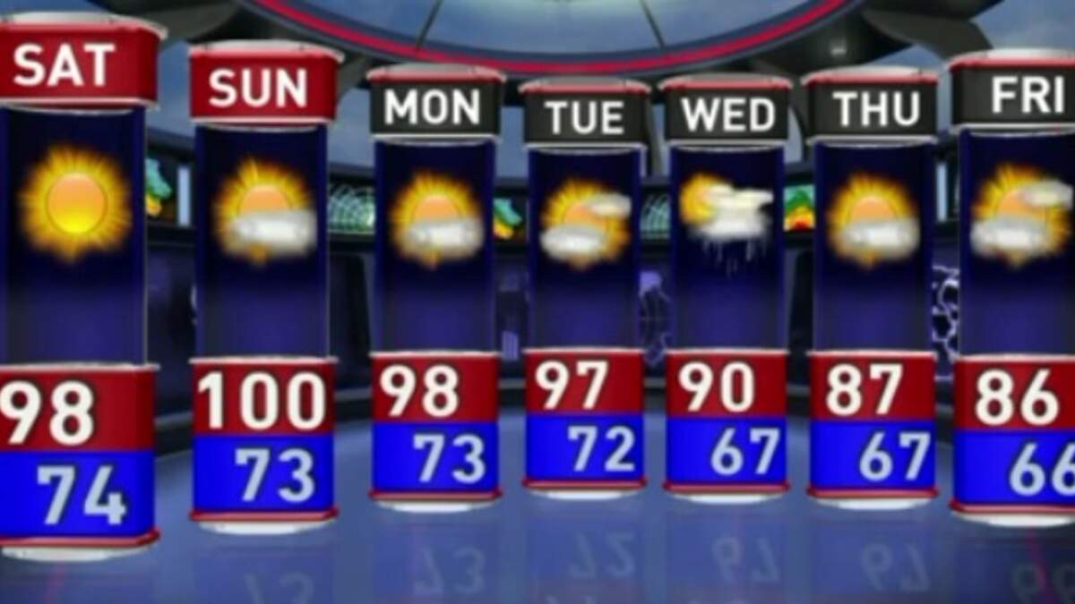WHO Channel 13 meteorologists say the worst of the heat will hit over the weekend as strong south winds will help the temperature climb to 100°. Dew point temperatures will rise into the middle and upper 60s which will make it feel like 100°+ as air temperatures will be in the upper 90s. Sunny skies are expected through the beginning of next week with the 90s lasting through Tuesday.