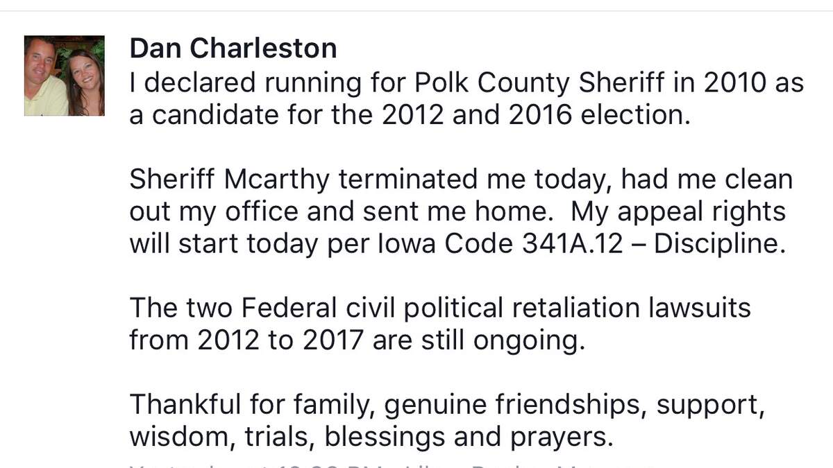 Dan Charleston answers questions from WHO Radio News on Facebook this weekend. He writes that two Federal civil political retaliation lawsuits are still ongoing.