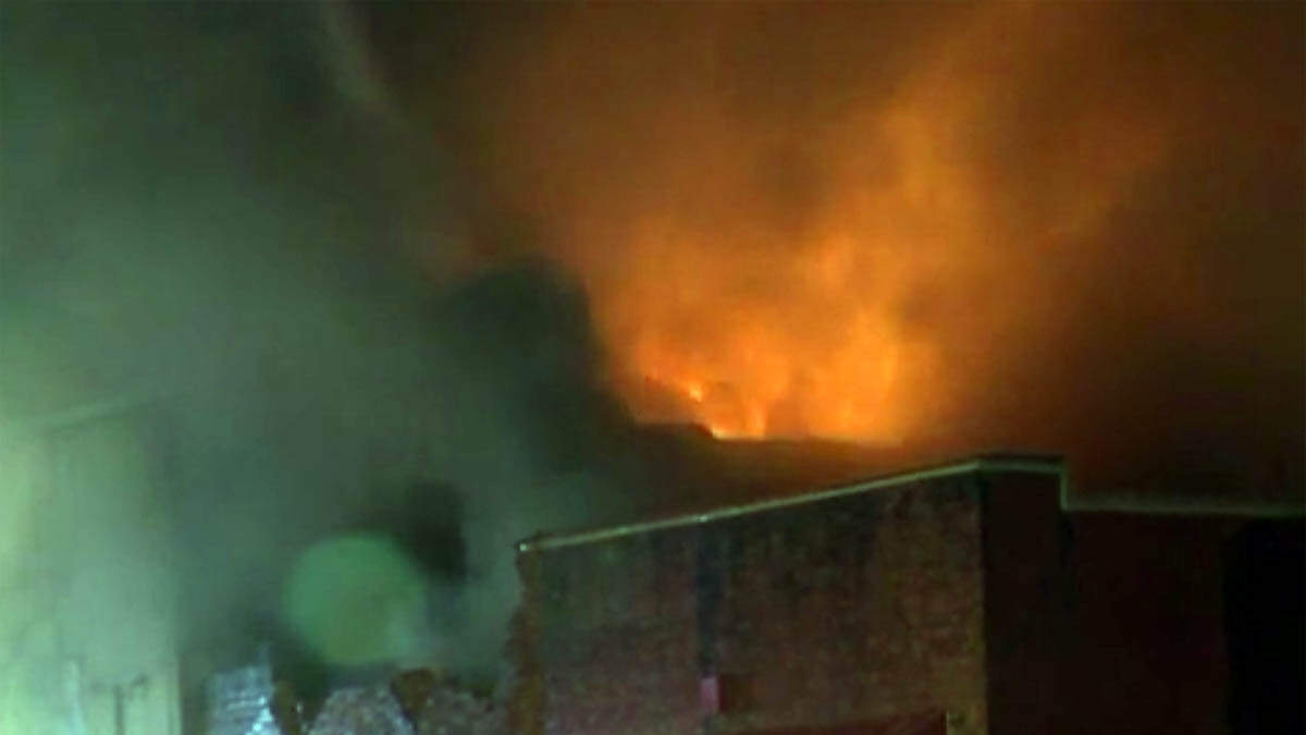 A bar and a store were completely destroyed by fire. A bank, and auction business were damaged by smoke and water.