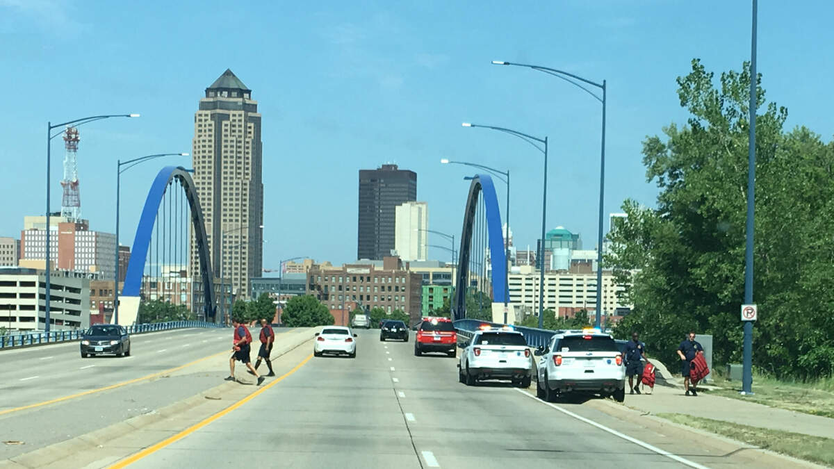 A river rescue wet team was called out to the MLK Blue Bridge near Fleur Drive. There were several police cars, an ambulance, a hook and ladder truck and fire rescue crew grabbing life jackets, ready to jump in to save a man reported in the river.