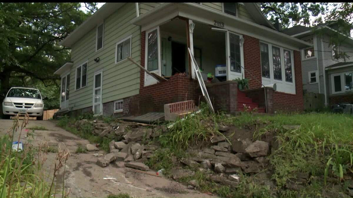 Police say the truck crossed the center divide, hit an oncoming car, and then crashed into the house, destroying the porch.