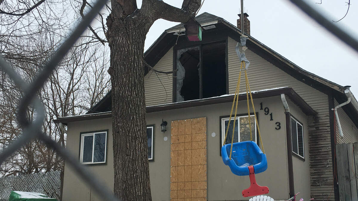 Flames were visible in the basement and first floor. According to dispatch audio, firefighters reported finding no one inside after two searches of all three floors of the house.