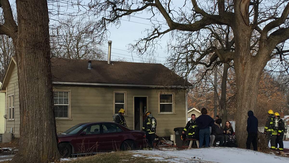 DES MOINES, IOWA - Seven adults living in a small house in Des Moines escaped after fire broke out Friday morning. Several people were standing and sitting in the back yard while firefighters carried items out of the house. One woman was wrapped in a blanket.