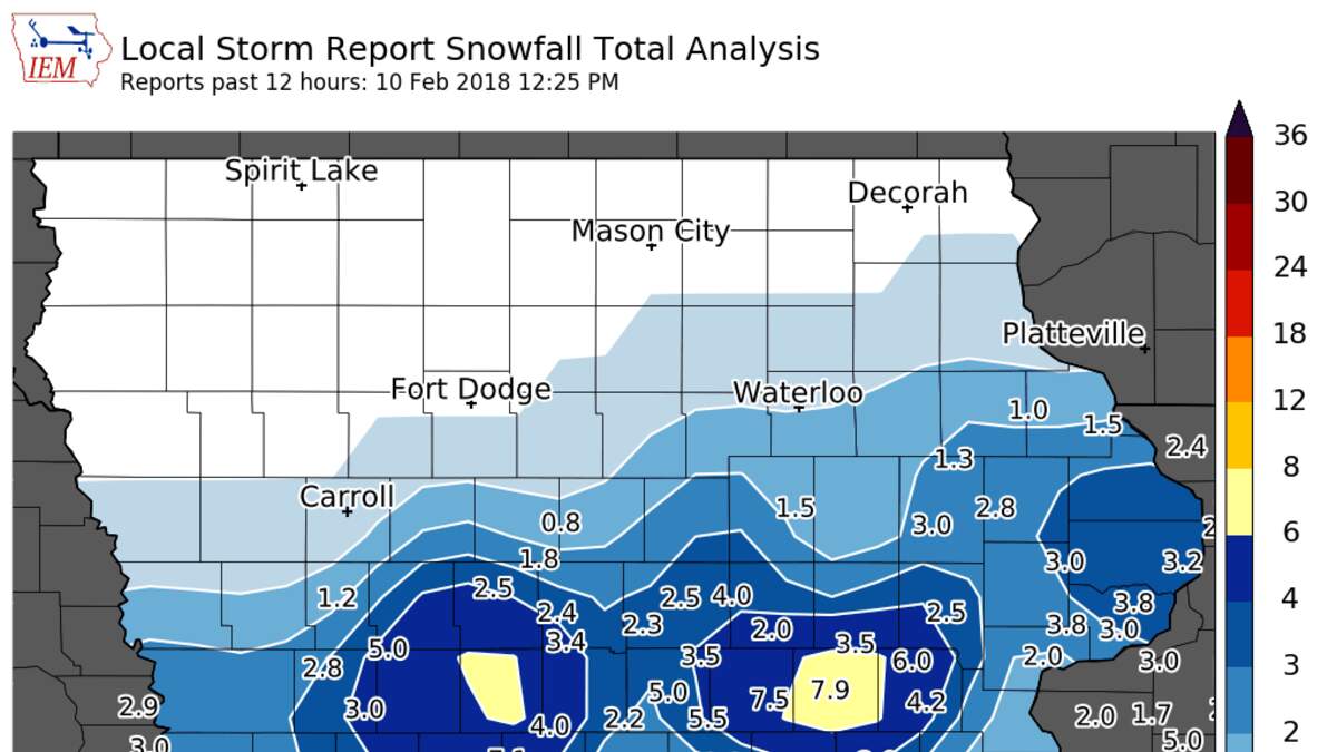DES MOINES, Iowa - While north central and east central Iowa claimed the highest snow totals on Friday morning, south central Iowa gets bragging rights Saturday morning.