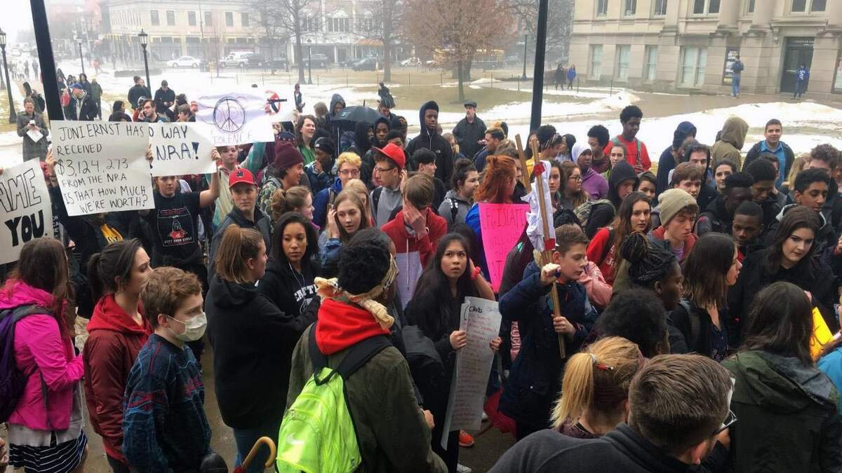 IOWA CITY, Iowa - Students at City High, West High, and South East Junior High in Iowa City walked out of class Monday, protesting gun violence.