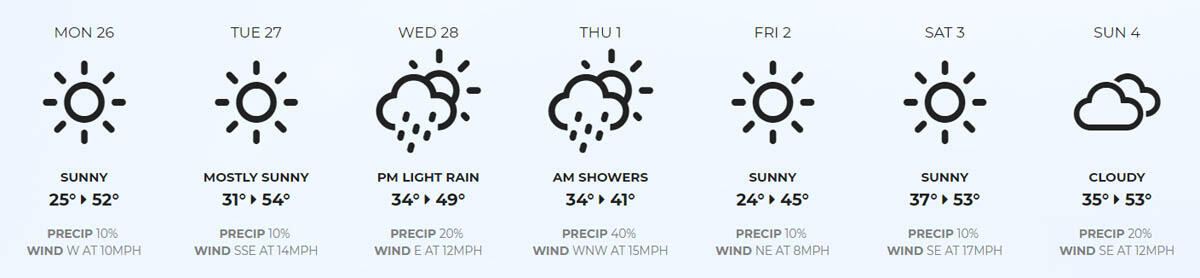 It will be sunny with temperatures in the 40s Sunday, and 50s Monday and Tuesday, according to meteorologists at WHO TV Channel 13.