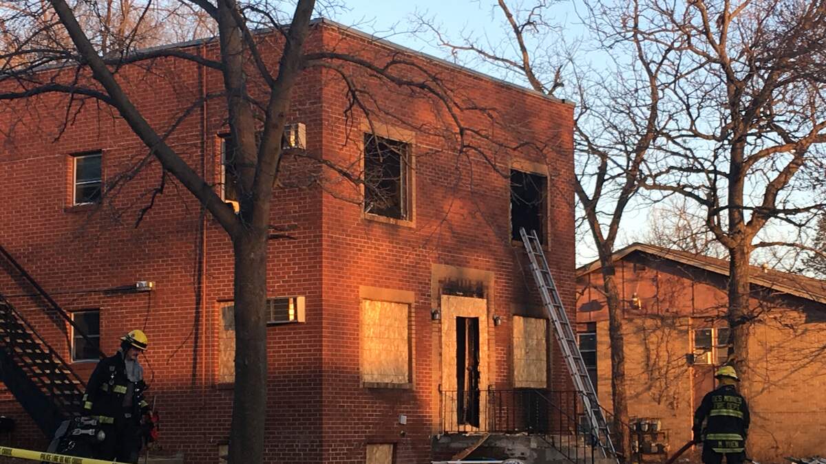 DES MOINES, Iowa - Firefighters returned to an apartment building in the 1700 block of Oakland Avenue Tuesday morning after the building was gutted by fire Monday night.