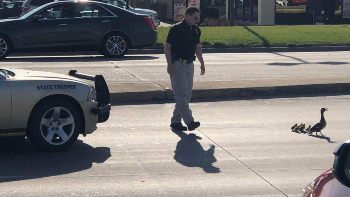 ANKENY, Iowa - The feel good story of the weekend belongs to the Iowa State Patrol Trooper who blocked traffic while a mama duck and her babies crossed busy SE Delaware in Ankeny Friday.