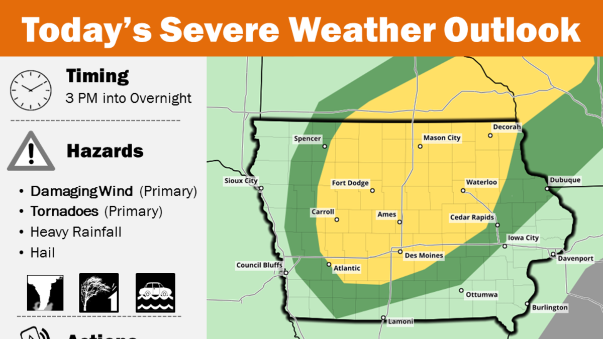 DES MOINES, Iowa - Severe storms with high wind, hail, tornadoes, and heavy rain are possible again in the Des Moines region Tuesday.