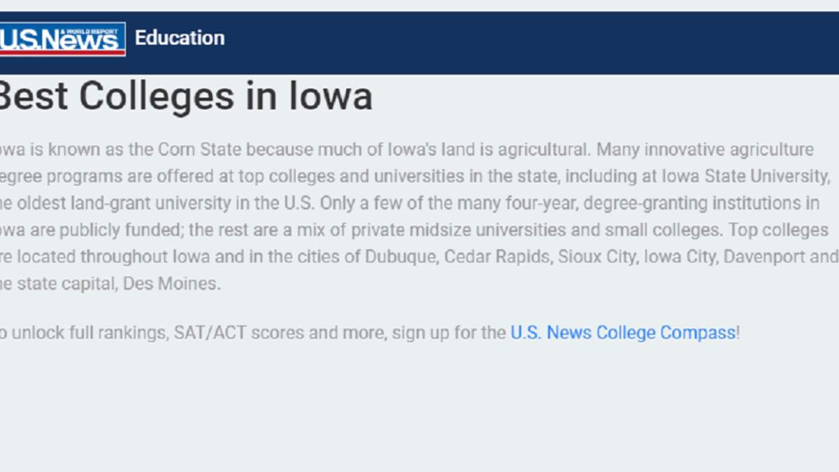 The new U.S. News and World Report college rankings are out, with two Iowa schools making the national list.