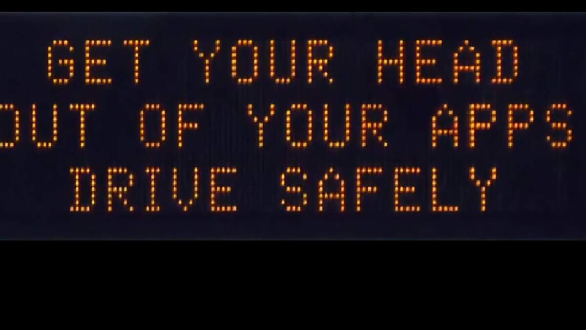 This one says GET YOUR HEAD OUT OF YOUR APPS - DRIVE SAFELY.