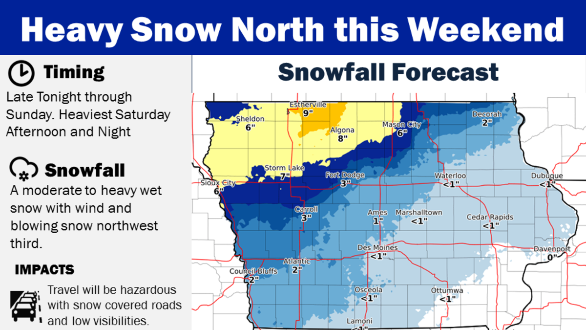 A strong storm system is bringing in a mix of rain and snow across the Northern Plains and Upper Midwest, including Iowa, this weekend.