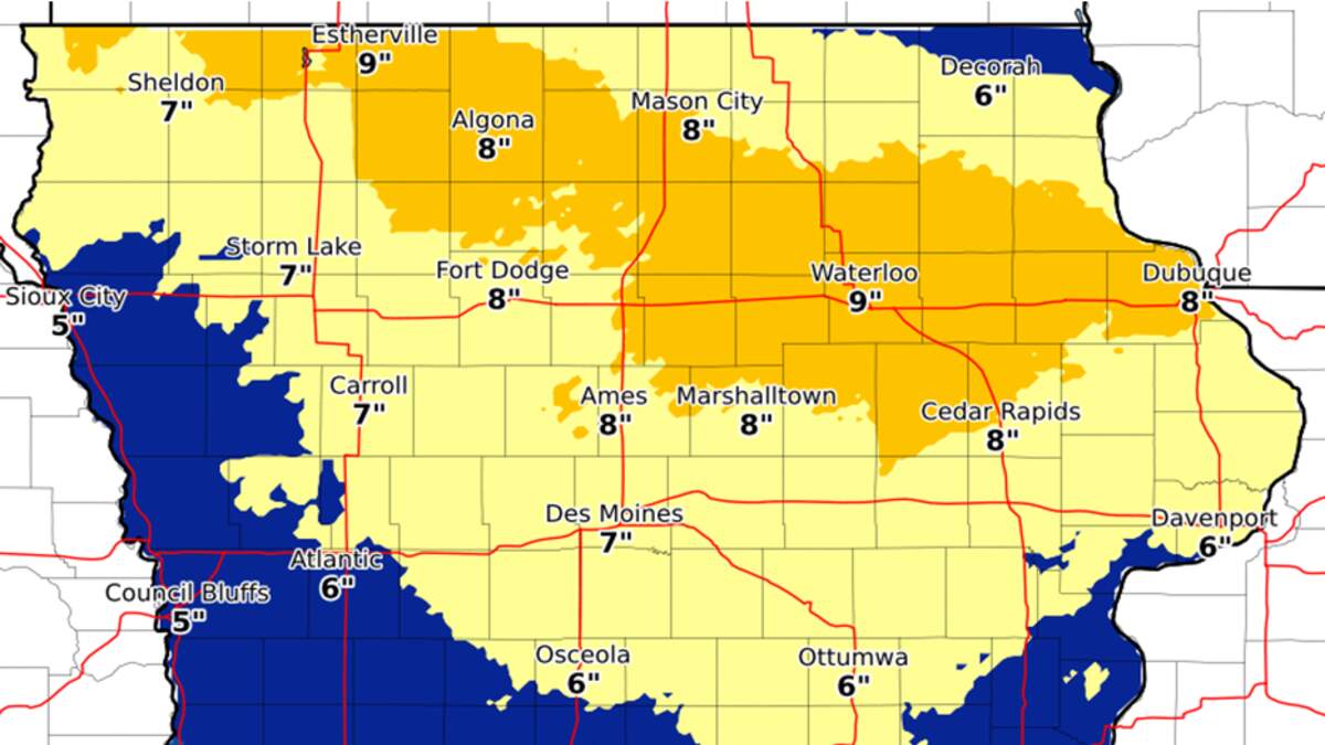 DES MOINES, Iowa - Moderate to heavy snowfall is forecast across all of Iowa on Friday through Friday night.