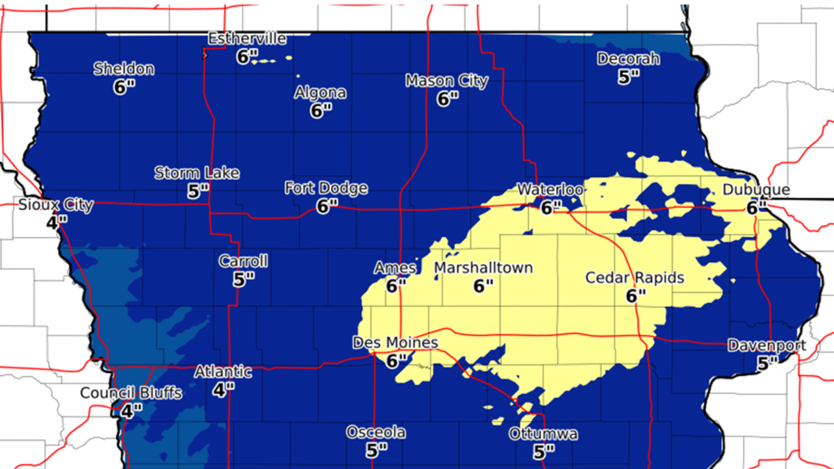 Revised: 6" snow coming to much of Iowa SNOW MAP