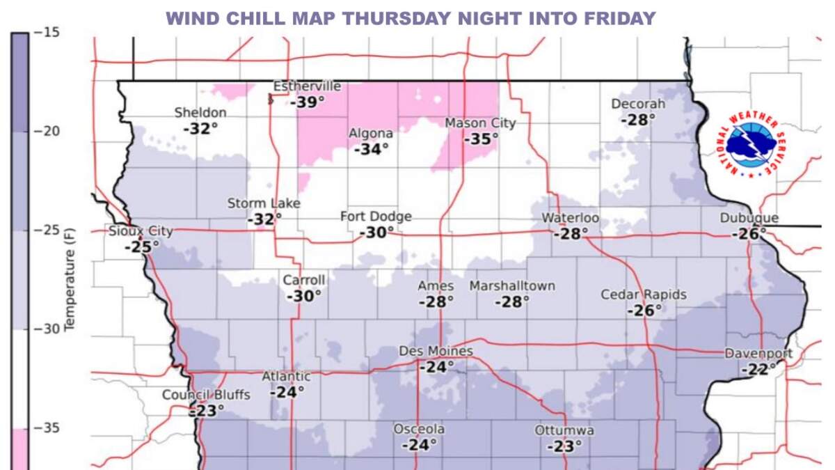 Bitter cold temperatures combined with the strong winds will result in wind chill values ranging from 20 to 35 below zero at times Thursday night into Friday.
