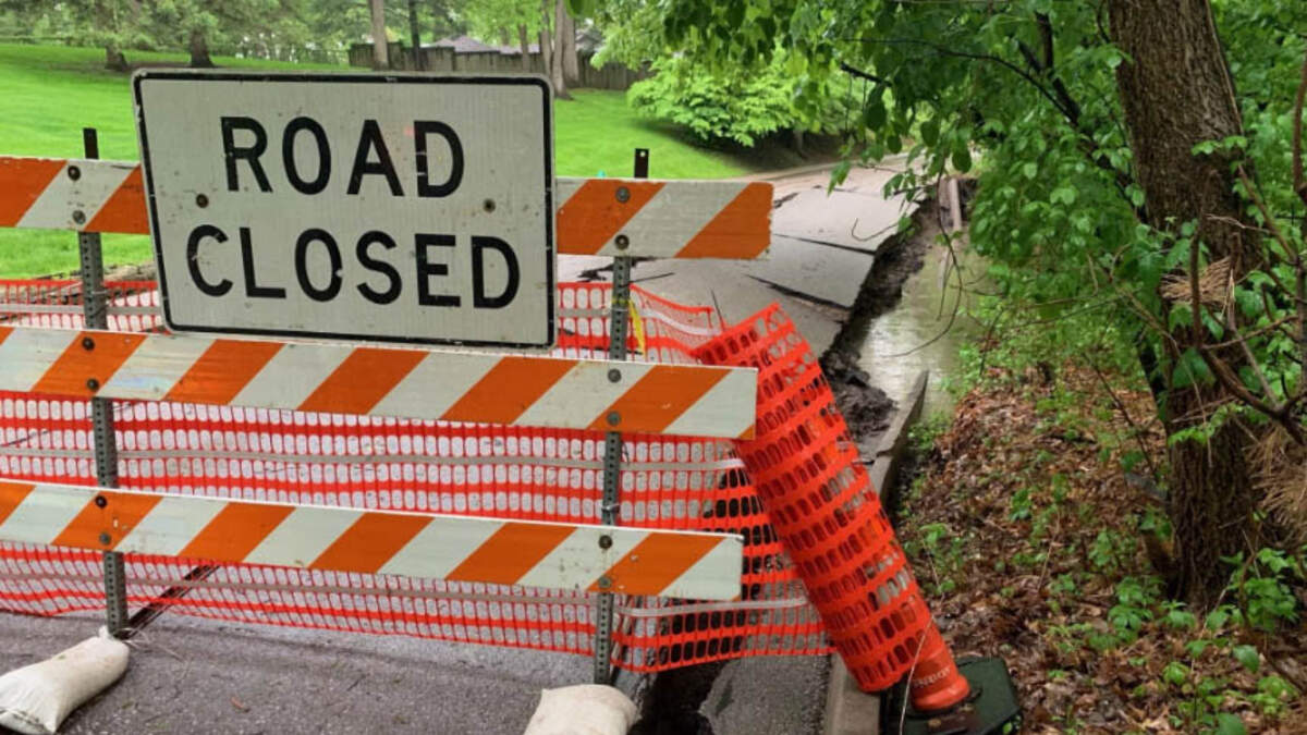 Street damage on Foster Drive in Des Moines from heavy rain. Photo WHO-TV 13