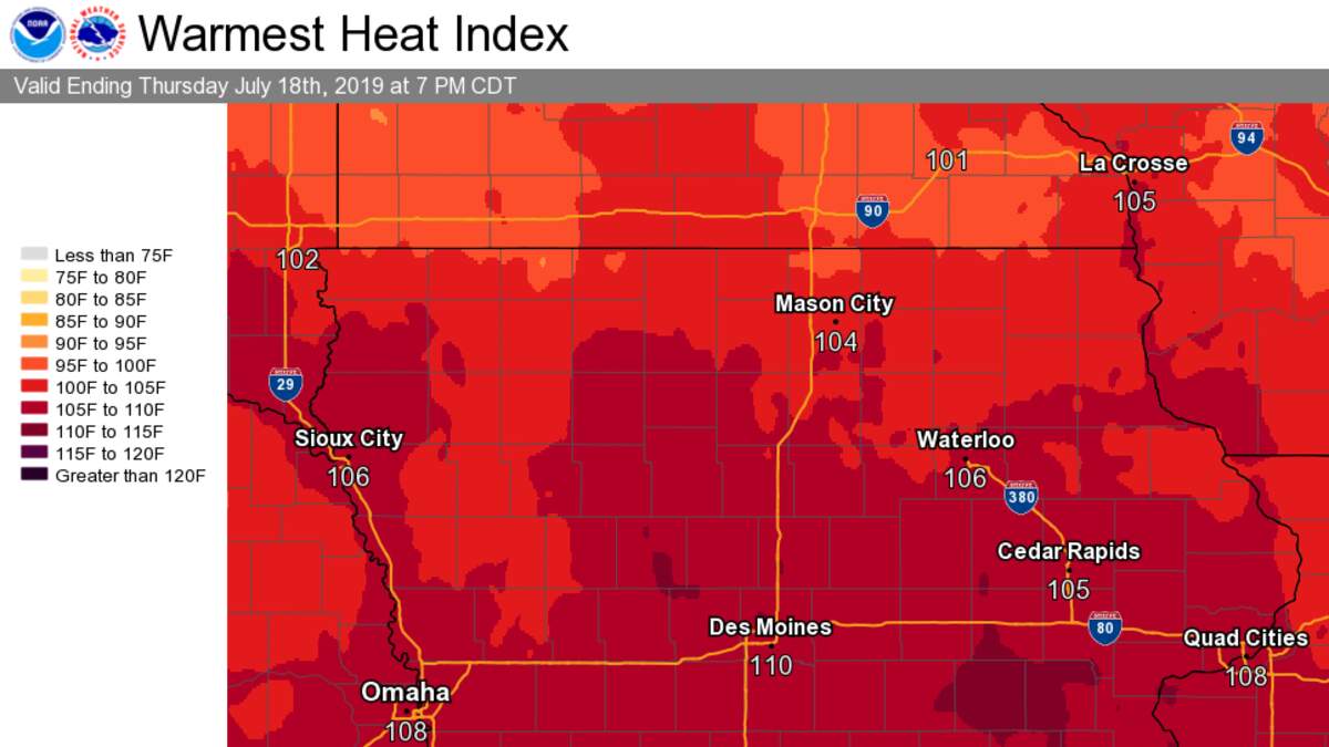 The Nebraska to Iowa to Illinois region is bracing for several days of near 100 degree high temperatures, and Heat Indexes that can be life threatening.