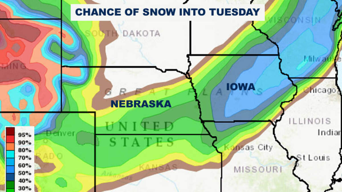 There is a chance of snow Monday, but snow is possible on and off through several days this coming week.