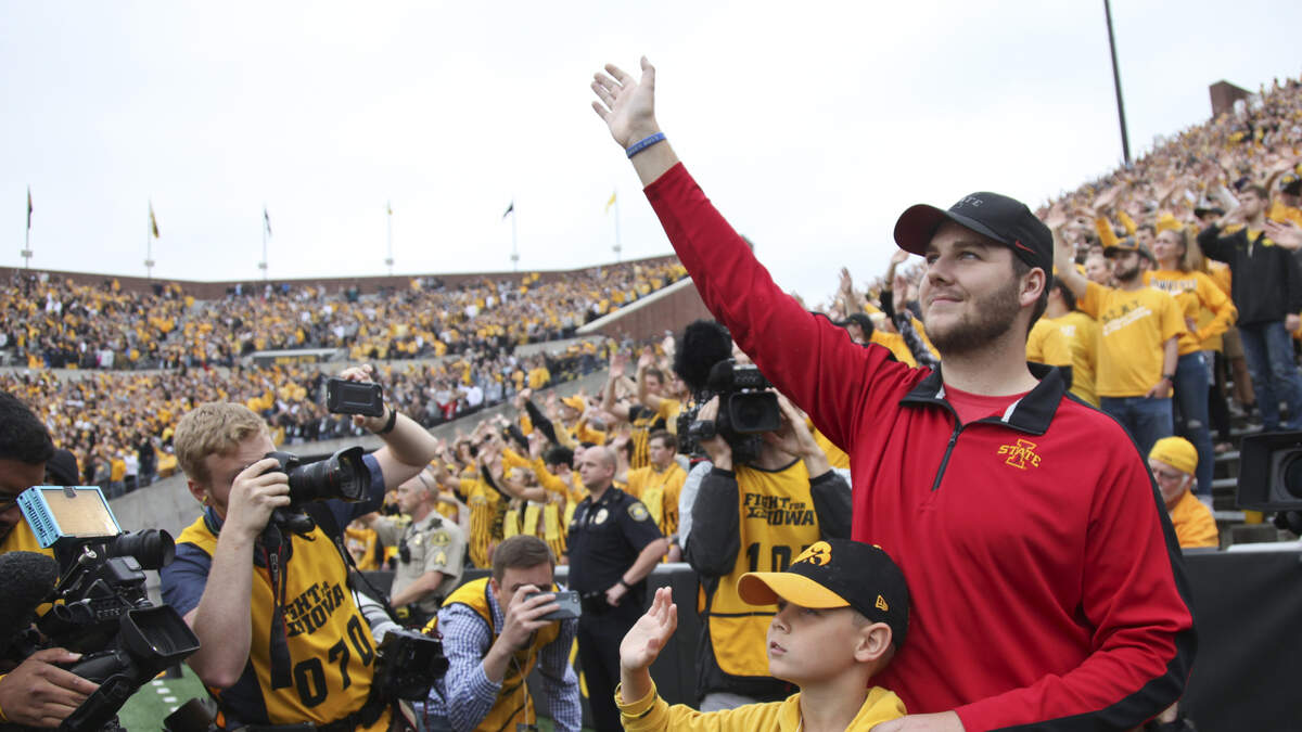 The Iowa State fan raised millions for the University of Iowa Stead Family Children's Hospital with a fundraiser that started with a sign for beer money. He captured the attention of the nation when he held the sign up at the Cy-Hawk game in September.