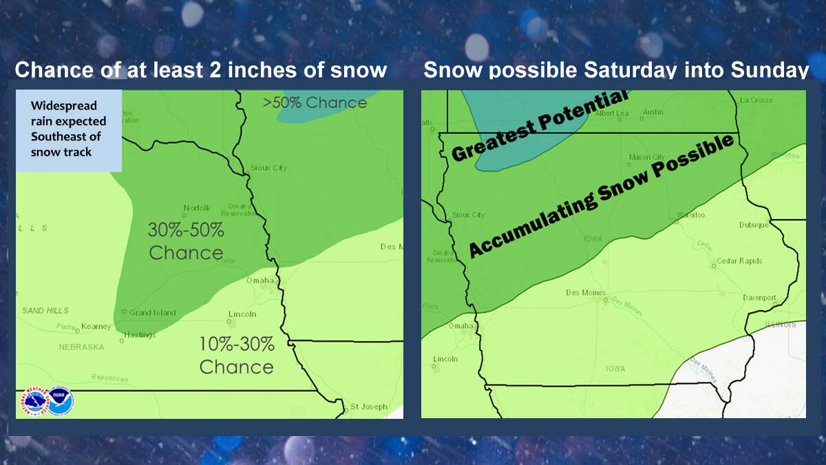 On the heels of the Christmas warm spell is colder weather moving in later Saturday, with a chance of snow from Saturday night into Sunday.