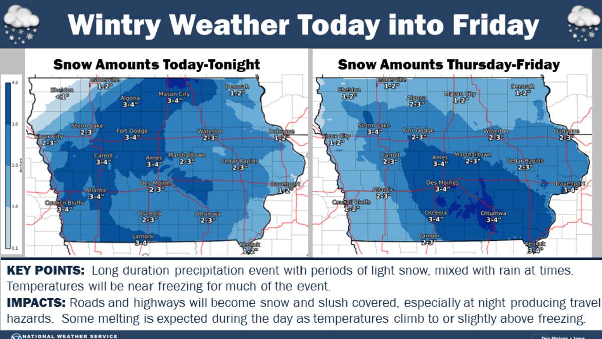 OMAHA, Nebraska - Light snow, mixed at times with rain is expected on and off from today into Friday with light to moderate accumulations across much of the region.