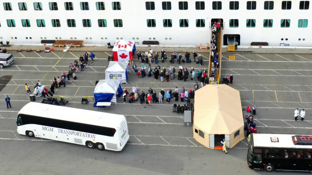 Tuesday, passengers with no symptoms were taken off the ship and sent by bus to board flights to quarantine sites in Texas, Georgia and California.