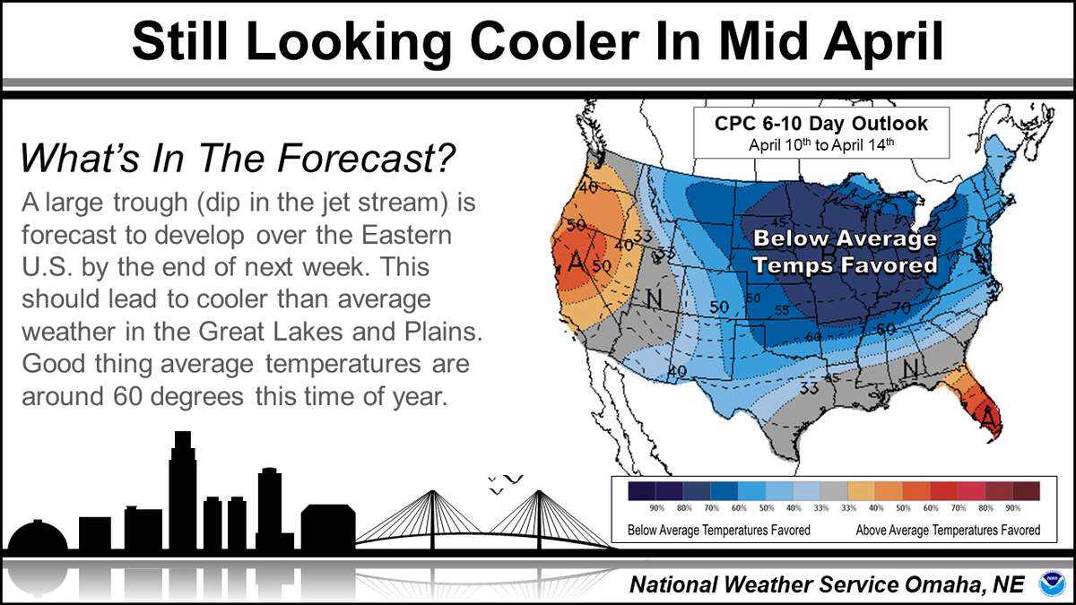 Below average temperatures are expected later this week and into the middle of April, starting as early as Thursday. We could even see below-freezing conditions in the mornings.