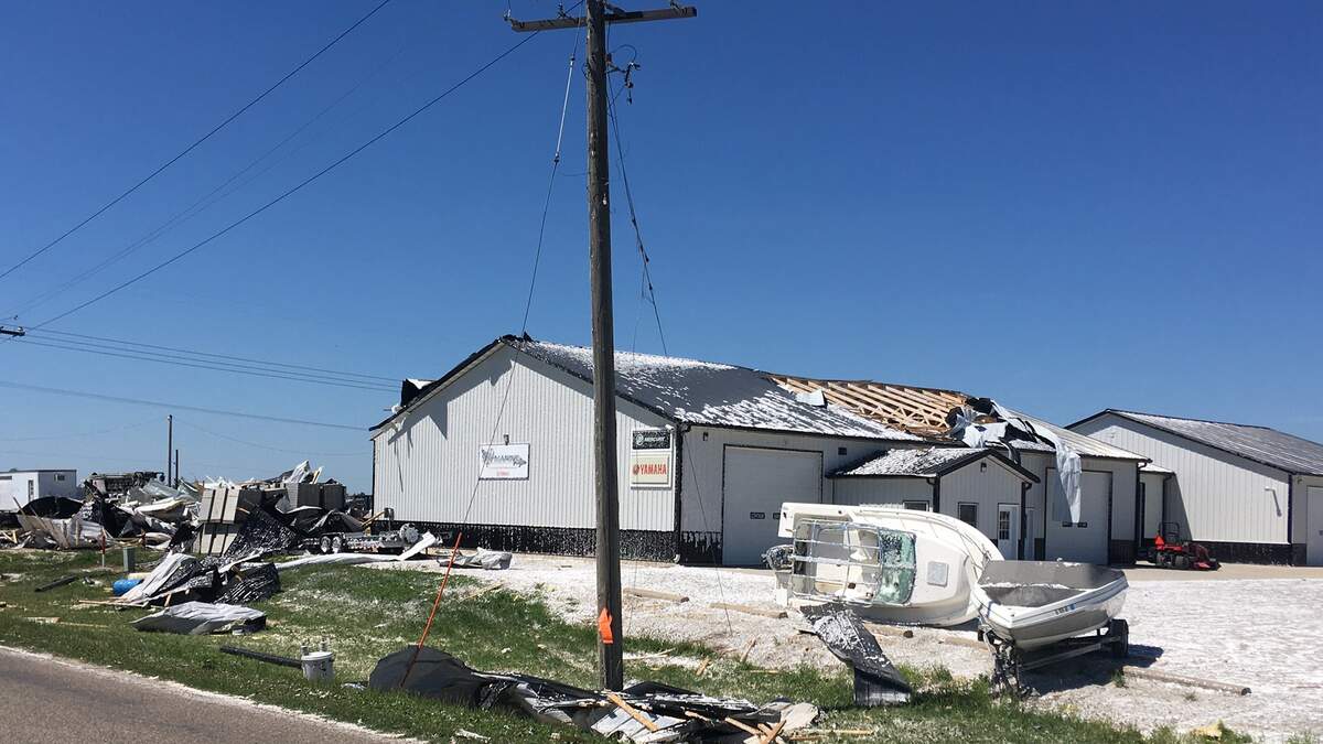 Roovesand walls are ripped open on businesses and homes, boats from a marina are blown around like toys. Farms and farm buildings are damaged and destroyed.