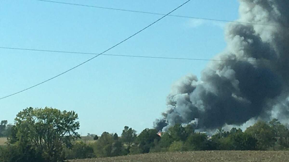 Witnesses say they could see a what appeared to be large farm building in flames from across a field.