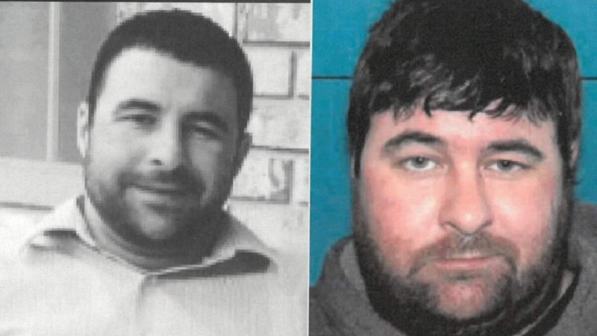 He is described as 5 feet, 11 inches tall, weighs about 230 pounds and has brown hair.