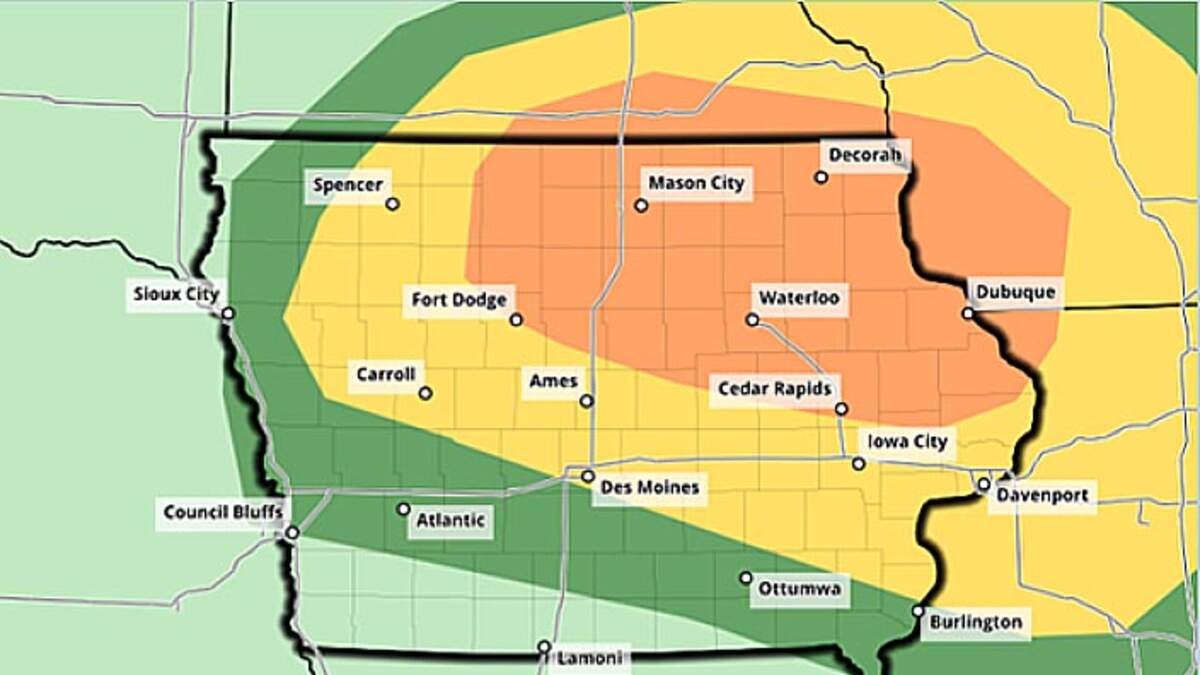 Thunderstorms are likely throughout the region, including Omaha, Nebraska, Council Bluffs and Sioux City, in Western Iowa today; but most of Iowa, Illinois, and Wisconsin are in the target zone for severe storms. There could be hail, high winds, an isolated tornado, and possible heavy rain and flooding.