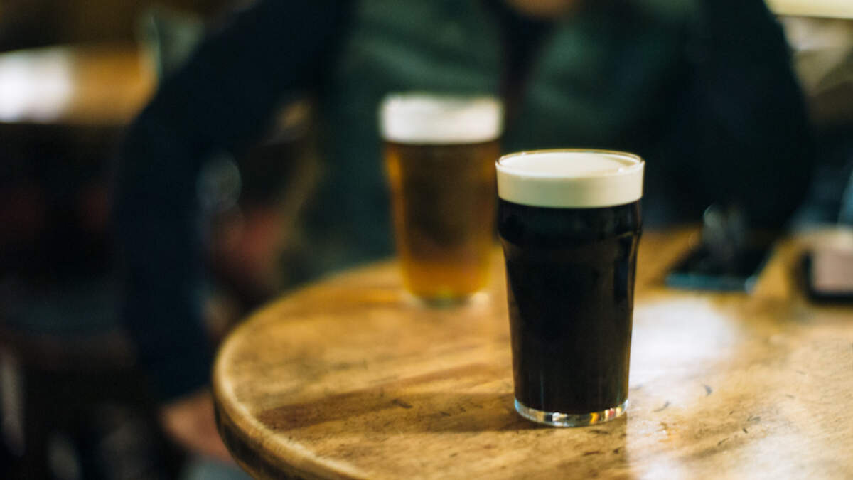 Pints of beer at the pub, smiling guy