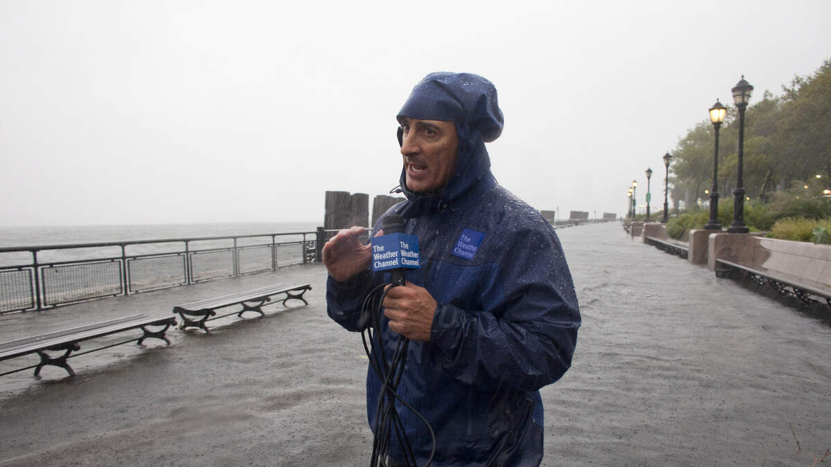 A Weather Channel anchor urged Cantore to get indoors to escape the wrath of the monster Category 4 hurricane.