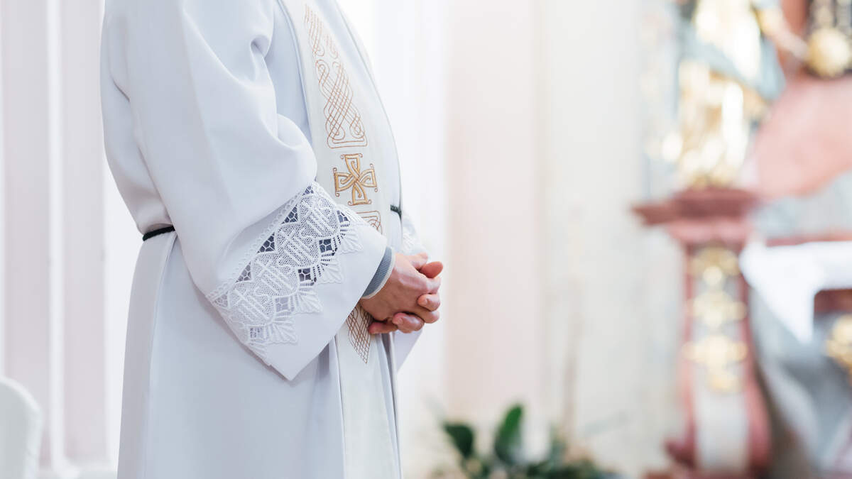 Midsection Of Priest Standing In Church