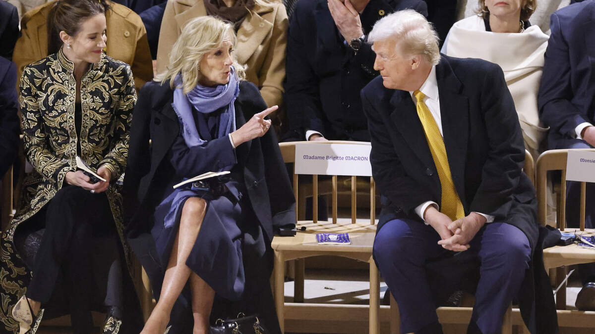 During the reopening of Notre Dame Cathedral in Paris on December 7, 2024, First Lady Jill Biden and President-elect Donald Trump were seen in a surprising moment of friendly interaction. The two were captured smiling and chatting after French First Lady Brigitte Macron momentarily left her seat between them. Jill Biden later revealed in an interview with The Washington Post that she and Trump exchanged light-hearted banter during the event.